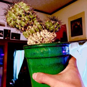 これまで、我が家のサボテンは棘がないか、あっても痛くないものばかりでした。 このたび、攻撃力の高いサボテンが登場! この、白い粉を纏ったような肌と、鋭い刃で刻んだような凹凸。そしてそこに映える黒い棘。 コピアポア・黒王丸の魅力にすっかりやられてしまいました。 似合う鉢に植え替えてあげたい。