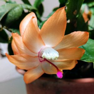 おはようございます 手入れを怠っていたシャコバサボテン 葉の手入れをしていなくて花芽があまりつきませんでした でも でもね ちゃんと花を咲かせてくれました それぞれの花のお顔や表情が面白いですね 淡いオレンジ色 室内に温もりをくれます 今日も良い日になりますように