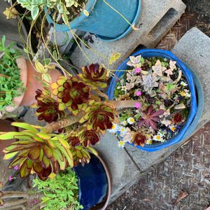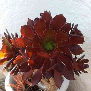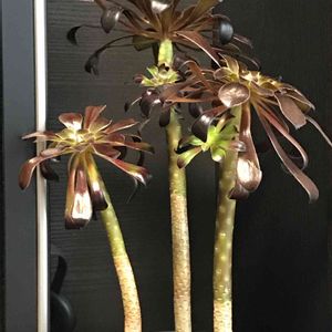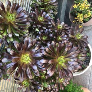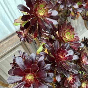 くろほうし、サンシモン、アエオニウム。どれで呼ぶか迷ってアイウエオと呼んでます。 他の植物とは別の場所にいるので、忘れがち。忘れた頃に水をあげるのがちょうど良いみたい。3年目かな? 色がついてくると、春を感じてるんだな〜と微笑ましい。 ひとりおかしな向きだけど
