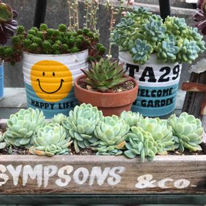 仕事場に瀕死のサンシモンがあったので 1つお持ち帰りして刺しといたら仕事場より大きく素敵になっちゃった😆 桜吹雪の隙間にちょこっと置かせてもらったのに先住者より大きくなっちゃってごめんね🙏