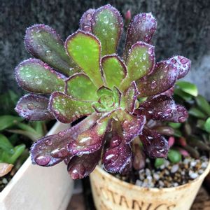 こんばんは🙇 なかなか大きくは、成りませんが😅ダイソー産のアエオニウム属サンシモンか黒法師どっちか分からないけど元気です‼️ 綺麗な色に😎日焼けしてきました‼️