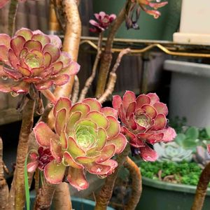 ●黒法師(サンシモン)アエオニウム属 この子達も私のお気に入りたち🤗 適度なお日さまに当たり いい色です もちょっときれいにレイアウトしなくちゃ\(//∇//)\