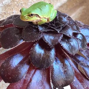 お迎えしたばかりのサンシモンさん あまり乗ってほしくはないけれど 可愛らしいので、まっ・・・いいか〜🐸