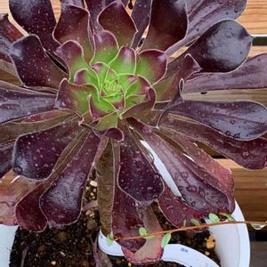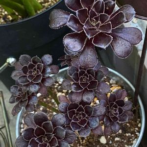 洋服は「黒」ばかりなのに ベランダを見回すと「黒」なのは この子達 (アエオニウム) だけでした🤔 とても輝いていて 存在感があります🤗💕✨