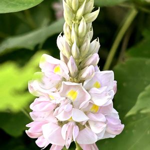 今日のお花🩷クズ🩷 葛 マメ科 クズ属 1️⃣トキイロクズ(朱鷺色葛) 別名 シロバナクズ クズの亜種ではなくて、花色の変異株という扱いのようです シロバナとトキイロを合わせてトキイロクズと呼ぶ時もあるようです トキイロクズと名付けた牧野富太郎先生の標本が、東京都立大学の牧野標本館にあるようです 以前投稿した珍しい色のクズは今も沢山咲いています 川沿いの土手の斜面で 2️⃣あなたは。だあれ? 私はクズと申します! 真上からのアングル いつもと違う目線で見ると、新しい発見がある! 万華鏡の様だ 3️⃣べっぴんさん 4️⃣本来の色 5️⃣新幹線🚅の線路のフェンスに絡まって群生している花が落ちて、一面クズの花びら 藤の花に見えます あたりがすごくいい香りに包まれています 🌸クズの花びらのハーブティーをネットで見ましたが、こんなに沢山咲いているから、一度作ってみたいです 洗って乾かすだけみたいです