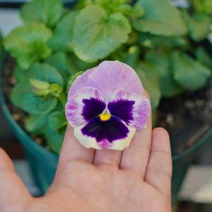 2024.11.19 カダン ボニータ 大きな鉢の方が大きい花になると思い鉢増ししました🪴 花が咲きましたが一般的なビオラの大きさです