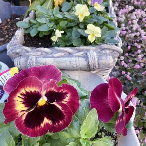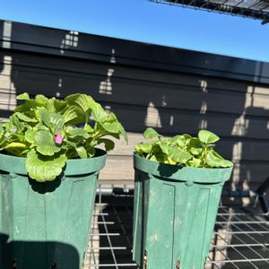 ✨カダンボニータモニター2024✨ 手前のお花は ビバラ・バイオレット💜 と判明! 植え付け時に蕾を全て取ってしまったのですが、右側はきっと‥ クイーン・イエロー・ビー💛 ではないかしら🤔 まずは一輪咲きました🥰