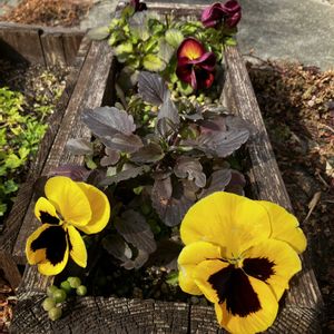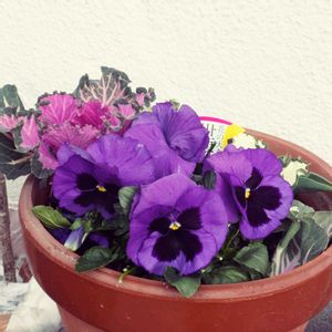 こちらはお外メンバーです♪ 今日の朝は雪❄️が降ってます😭 なんとこんな寒い中やっとお花が咲きました🌸🌸☺️一枚目の画像のパンジーちゃんはほんと大輪ですね!2枚目の画像のパンジーちゃんは小さいですがきっと大きくなるはず👍