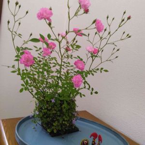 こんにちは~🤗 鬱陶しい今日です ミニバラを苔玉にして姫雲南カズラが苔の代わりに………ちょっと見にくいかな🤔ごめんなさい(^-^;ネ