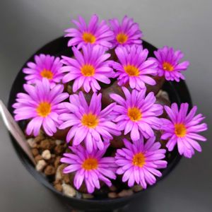 ほむらさんちからやってきました。 ひときわ厳重に梱包されていた鉢をといたら、リトプソイデスが満開で出てきました🌸 思わず声を出してしまった😁 そして今日、昨年ほむらさんちから来たオフタルモが咲いたのです。 こちらは真っ白✨