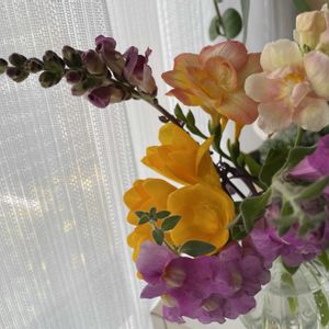 ベランダに咲いた金魚草が伸びたので😅花瓶に🌼*・ヾ(*´∀`*)ノ 2時頃に咲いてる三時草です( 'ᢦ' )🌼*・ エリカせシリフローラはまた先が伸び始めました💦 お昼からは夏日になりました☀️💦