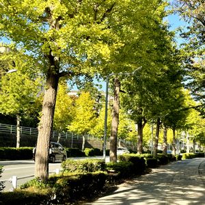 漸く、銀杏が色づき始めました。 この通り、好きなんだよなぁ✨ あ〜、緑と青い空に癒されました