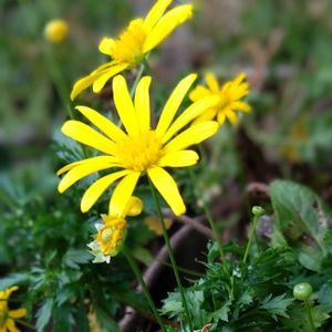 近くで見かけたのは 今日のお花の 🌻ユリオプスデージー🌻 と思い込んでたけれど 葉が白くないし 切れ込みも浅い気がするので 同じ仲間の 🟡マーガレットコスモス🟡 かもです (⋆ʾ ˙̫̮ ʿ⋆)ゞ?