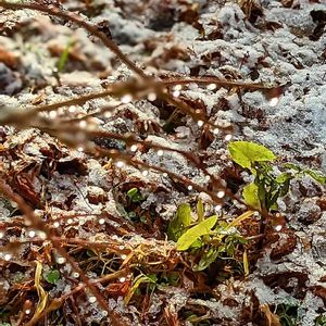 今朝の庭°。゜❅❄️❅°.。゜*❄゜.°❅❅°.。゜* うっすらと雪化粧✨ すっかり葉の落ちた糸紅葉の枝に沢山の水玉がキラキラと。oOo。.:*:.。o 息を吸うと秋から冬の匂いに変わったのがわかる…寒いけど好きな匂い🤍