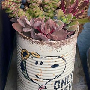 🏷毎月2日はスヌーピーの日 約2年前に寄せた鉢🪴ワテルメイエリーさんが伸びてたのでカットして、コーラムさん入れて仕立て直し😘