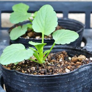 パンジー·スミレ (10/15) まきから育てるパンジー·スミレ 2025-08-18 播種 2025-09-18 ポット上げ 2025-10-15 現況