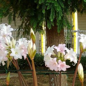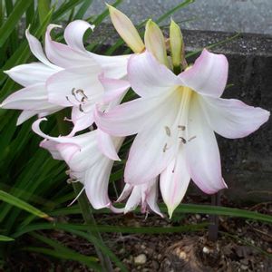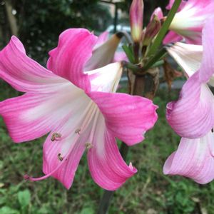 団地の花壇に咲いていたこのお花は? パチリ ホンアマリリス、アマクリナム、・・・はて?🤔