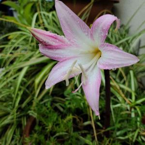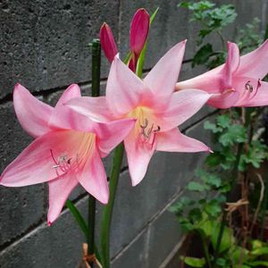 とっても可愛いピンクの花❣️ 名前を教えて下さい。 ホンアマリリスとわかりました。 ありがとうございます🤗