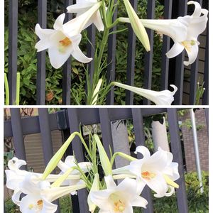 上 タカサゴユリ 下 新テッポウユリ 赤い線が入ってるかどうか!なんて、雑草然と混じり合って沢山咲いてるのを見れば、、交雑してるのかなと普通に思ってしまう🧐 増えすぎ外来種問題は悩ましいけど、、美しいよそ様の庭😯