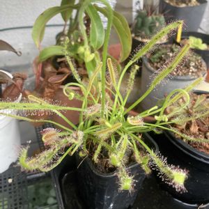 1枚目、ホムセンで寄せ植えで貧相になってたモウセンゴケを秋に買い、春と共に元気になってもっさもさになって虫取りまくってます😂 グリンとして粒々がついてるのは、花芽かな? 2枚目、ホムセンで購入のモウセンゴケのアリキアエ。 植え替えからようやく根付いたのか、プツプツと粘液がでてきて真ん中からグルグルでてきた🌀