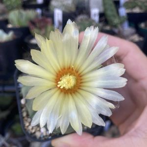 今日は曇りだからか、お花がなんかみんな薄目気味w 1枚目、これまた気づいてなかったロフォフォラのお花🌸 日焼けしてしまって、お肌荒れ気味💦 しかも何回撮り直しても、ピントがいかない😂 2枚目、マミラリアエルサムはまだまだ咲いてます❣️ 冠みたく綺麗に咲きそうのって、ホント難しいーー 3枚目、2個目のお花の桃太郎🍑 ちゃんと咲くとハイビスカスみたいなのにーー 4枚目、去年桜島でお迎えして連れて帰ったギムノカリキウム瑞昌玉。 この子はどこでも手に入る子だけど、ホントお花が美しい✨ 曇りが悔やまれるけど、ホントサボテンたちのお花は最高すぎます😆✨