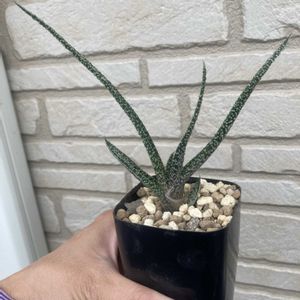 昨日ホムセンに鹿沼とガーデニング用の土を買いに行き、ミミカカグサとは別にハオルチアを買って帰ってました😂 このハオルチアだけ名前が付いていて、ゴーストと書いてました👻 確かに色味は薄い黄緑。 ただ徒長気味なので、我が家のスパルタ育成で美しい姿にしてみましょう😆 花芽も1本チョンパ✂️ 2枚目はこの冬枯らしかけた玉扇斑入り💧 なんとか生き返った!?ような🤔 斑入りの成長の遅さすごい… 冬にパサパサになってた天津も、ムチムチになってきて一安心😮💨 レアはほぼ持ってないけど、ハオルチアは持ってないの見かけたら買ってきてしまう🤭