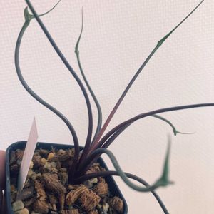 @みー さんのpostを見てどーーーしても欲しくなりフリマサイト物色したら見つけちゃいました! スタペリアンサスのピロサス。 もう、このモケモケたまらん🤤 なんとも言えないニオイの花が咲くらしいので、今後が楽しみです😂 もう一個その方が出されてたもの、ついでに購入🤭 ハエマンサスマユハケオモト。 これかわいい花が咲くみたいで、探してたんです😆 普通の万年青ら持ってるんですが、この子のお花をみたくて🩷 今調べたら、マユハケオモトはヒガンバナ科だった! 知らなかった😂 これでもうほんとに寒くなるからラストです⛄️