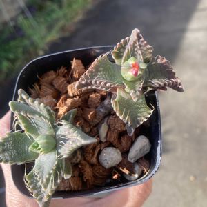 実家でもらった謎フォーカリアが、うちにきて3年目で咲きそう👀 四海波?かなぁ? 簡易温室棚の1番奥で、まーーーったく気づいてなかった💦 今年の夏暑かったけど、冬型だから逆によかったのかな🤔