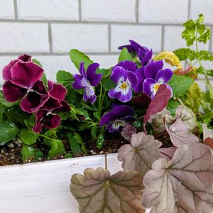 こんもりミルフル♡ わらくのプチグレースに似てるかも(*´꒳`*)❤️ ワインレッドに白い縁取りが大人シックなビオラさんです♡ 小輪パンジーわらくの寄せ植えの仕立て直しをしました♪ 虹色スミレと入れ替えました。 雪が降るまでは楽しめそうです❄️ 降ったら避難しなくちゃ💦 今から春が待ち遠しいな…☘️