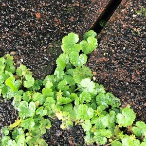 タイルの剥がれた場所にきっちり真ん中から生えてきたウラジロチチコグサ withチドメグサandツメクサ