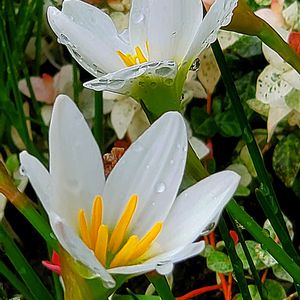ゼフィランサスそれぞれ ①②③🍀タマスダレ 🏷️今日のお花 6枚の花弁にスマートな葉が魅力ですね🤍💚 🏷️白い水曜日♡ 参加させて下さいね ④🍀サフランモドキ ⑤🍀キバナゼフィランサス又はキバナサフランモドキ どれも別名の雨の後に開花すると言われるレインリリー 雨雫も良く似合います⋆̩☔*̣̩