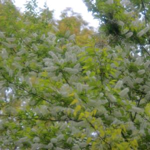 🏷木曜モフモフ ウワミズザクラ🌸(上溝桜) バラ科ウワミズザクラ属の落葉高木🌳 調べて驚き!なんと名前のとおり、サクラの仲間です。 白い小さな花が房状にたくさんつくのが特徴で、花だけ見ると、とてもサクラの仲間とは思えません👀😲👏ブラシのような白花は、ソメイヨシノもヤマザクラも花を落とした頃に開花する異色のサクラです💕 果実は食用になるので、鳥類🐦やツキノワグマ🐻も大好物😋 しかし、去年は、多くのクマが人里に出没して社会問題となって、ずいぶん駆除されたようですね😓 野生のクマが暮らせる森づくりは、人間が安心して暮らせる環境づくりにもつながるはず………なのですが………🐻🌳🪵🍯