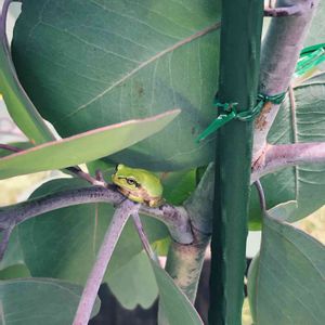今日は雲がかかって少し暑さも和らいでいます。☁️ 台風のその後の進路も気になるところですが…🤔 お盆休みまでもぅ少し😤 夏バテしないように頑張ります❗️💪 〜CAST〜 ユーカリポポラス🌿 カエル🐸 イボ竹支柱🎋