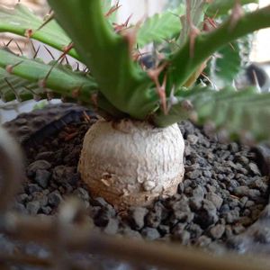 昨年植え替えサボった飛龍さん💧 根っこを傷つけないよう 鉢から抜くのに とっても時間がかかりました😅 ベラボン(M)粒子で育てたおかげで? 根回りビッシリ‼️😄 巻き付いてしまった鉢底ネットは 無理やり取らず このまま植え直します😅 先日、GSで情報を得たので ベラボン細粒(Ssize)を無事に 取り寄せる事ができました👍 ありがとうございました❗ 塊根部分を肥らせたいので、 昨年よりすこーし深めに植え 雨ざらしにするつもり~😊