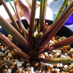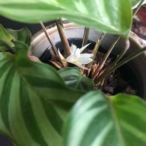 🌿カラテア フレディ🌿 1ヶ月くらい前に植え替えし、根をだいぶカットしたので心配していましたが、根元を見ると新芽がいっぱい‼️ その中に白いものがありました。花💠?花芽みたい~👀‼️ 成長するのが楽しみです("⌒∇⌒")💕