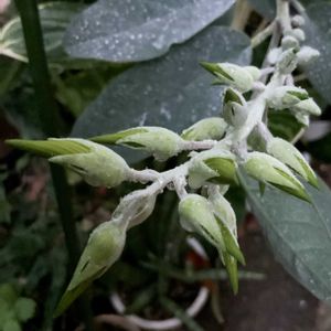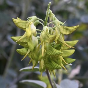 変わった植物見つけました。 グリーンバードフラワー 小鳥の形の花が咲くそうです。