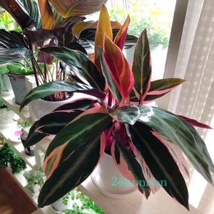 こんばんは ストロマンテ トリオスター(クズウコン科・ウラベニショウ属) 葉っぱが緑とクリーム色で葉の裏側が紅色の 美しい観葉植物です こう言う葉っぱ達に囲まれて飲むコーヒーは 美味しいです 花言葉*強い気持ち 付き合っている中で 気持ちが噛み合わなくなる 時もあったけど わたしこの人と 絶対に一緒になる って言う強い気持ちが あったからやって来れたわ(﹡ˆ﹀ˆ﹡)♡