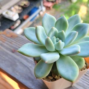 今まで置いていた場所に太陽が当たらなくなってきたので、場所を検討。 でも、その場所はハオルチアでいいかも…。 ムチカ錦。 冬にお迎えしたのが、ようやく開いてカッコよくなってきました。 しかし、最近「もっとよく選ぶべきだった…」と思っています。 「同じ価格なら、小さくて斑が多いものより、斑がちょっと少なめでもサイズが大きいものを」と思ってこの株を選びました。 今は「小さくても斑が多いものを選ぶ」の方です😅 成長点が斑なしになりそうな予感💦 そして、斑入りの窓が美しい✨ かなり大きくなったので、子株が出てくれることを期待。 2枚目、フレーヌ✕チワワエンシスジェコラ(左)、エレイン✕ラウレンシス(右)。 フレーヌ✕チワワエンシスジェコラは、THE FACTORYさんの苗をイベントで1年前の5月に購入。 かなり大きくなってきました😌 元々はミソップさんの「さくらホイップ」が欲しかったのですが、買えなかったのでこちらをお迎え。 今はこちらで十分満足しています👍️ 葉挿しが出るようなので、いつか取りたいと思います。 エレイン✕ラウレンシスは、フリマアプリで。 ラウレンシス好きなので思わずポチりました😁 しばらくぐらついてましたが、ようやくガッチリと。 どれくらい青く染まるか楽しみです✨ ちなみに、フレーヌとエレインは同じものです。