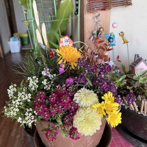 今日は晴天☀️ですが 外は肌寒く時々強風があり ちーちゃんハウスの ビニールが ハタハタグラグラと 音を立てている まあ ハウスが倒れる程ではないけど… ちょいと鉢が余っていたので暇つぶしに寄せ植えをしました♪(๑ᴖ◡ᴖ๑)♪