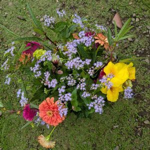 風の強い日曜日、これからお墓参りに。 もう。西武ドームの近くも寒いので、一晩で霜にやられてしまうかも。 さすがに庭にお花も水仙しかなくて、買ってきました。 ケイトウ、カンガルーポー、それに水仙も入っていました。 ガーベラも、きれいだな。 初恋草、なんだかこれも一年中咲いていたような気がします。