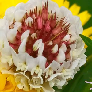 シロツメクサ? 白と赤のコントラストがとっても綺麗! 赤い蕾は開花すると白くなるのかな… アスレチックエリアで娘が摘んだお花 2025/5/31