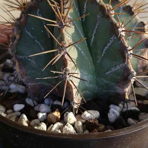 サボテン般若 厳つい棘と形と白い斑点模様に惹かれて、つい連れて帰ってしまった。 まあまあ耐寒性はあるみたいだけど、無加温のビニールハウスで越冬できるかしら。