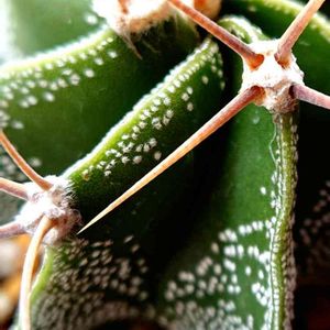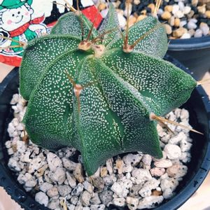 アストロフィツム 般若さん。 まだ小さいですが 私の持ってる本によると かなり大きくなるようで 楽しみです。 白いポチポチがあって 綺麗なのですが、 綿虫が付くと見分けがつきにくいので 注意しようと思います。