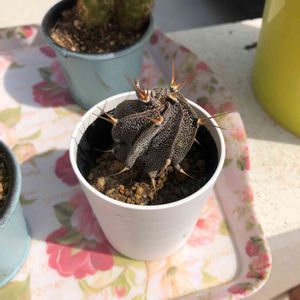 HCで、いわゆる「抜き苗」で売っていたアストロフィツム。根が弱そうだったので、ダイソーのサボテンの鉢に植えてしばらく様子見。