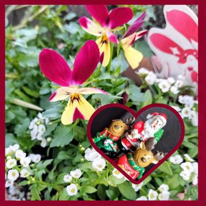𐂂𖠰 \ ᴍᴇʀʀʏ ᴄʜʀɪsᴛᴍᴀs / ꊛ໋̝❅ 昨日に続きクリスマスをお祝いして 小さなクリスマスのピックを取り入れてみました! 棒の上にサンタさん🎅達が乗ってる感じで 植木鉢に刺して飾ります😀 花は見元さんのビオラ カーメン君とのコラボ ルビーラパンです🩷 白いアリッサムと相性良いよね🤩
