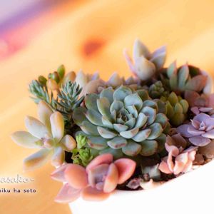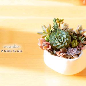 KuRaRa☆さんからいただいたミニマhybさんをちまちま寄せに使いました。 素敵なプレゼントありがとう(*>∀<*) 去年、陶芸体験で作ったときに倒して歪んだ鉢。これはこれで面白いと焼いてもらいました。 この日のためにとっておいたの (*^3^)/~☆ 【masakoの多肉No.79】