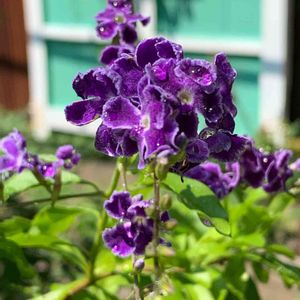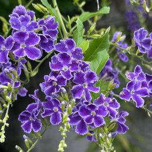 デュランタ宝塚が咲き始めました 紫に白い縁取りがなんとも気品を感じる 満開が楽しみ