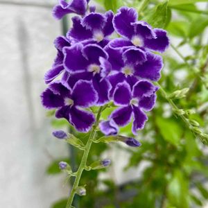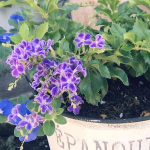 おはようございます😊 デュランタ・宝塚💜 白の縁どりのある紫のお花が好きです💜 先週立ち寄ったHCでお安く出ていたのでお迎え〜🎶 2年ほど前に一度ダメにしてしまったのでどうしようか悩んだのですが400円というお値段にリベンジする事に。。😂 今度は上手く育てられるといいなぁ💜