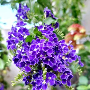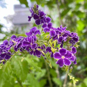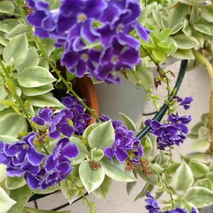 裏庭の鉢植え デュランタ宝塚💜🌿💜 優雅に咲いています🎵