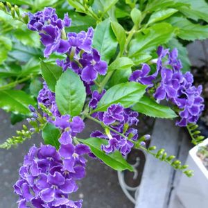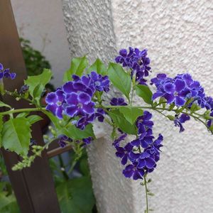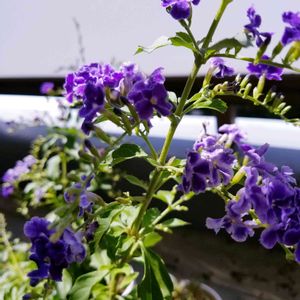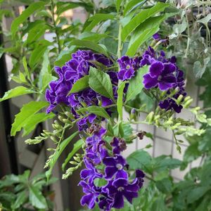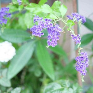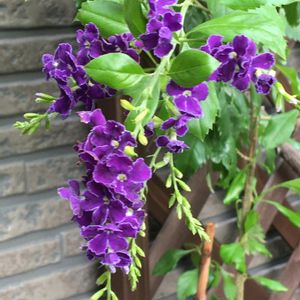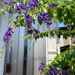 デュランタ宝塚さんが咲いてくれました😻💚🤍💜 何年か前の台風の塩害でお☆様にしてしまい 新しくお迎えして2年目ですが 細いながらちゃんと咲いてくれます😸💜 もっとお☀様に当てて上げられれば良いのだけれど…😿